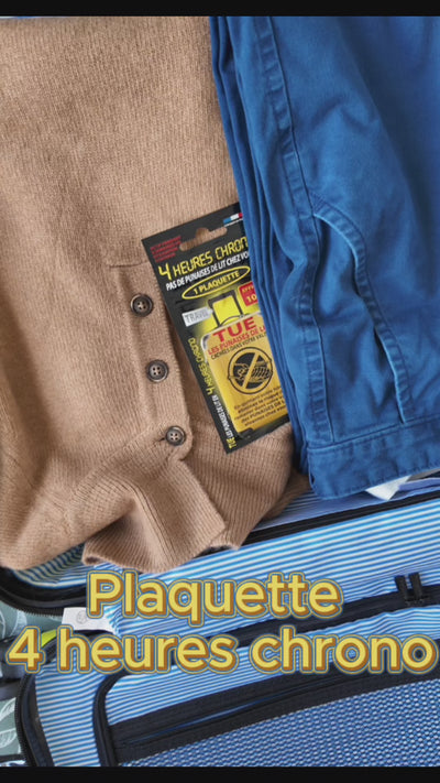 - Prête à l’emploi : aucun appareil, aucun spray, juste une plaquette à déposer dans vos bagages.
